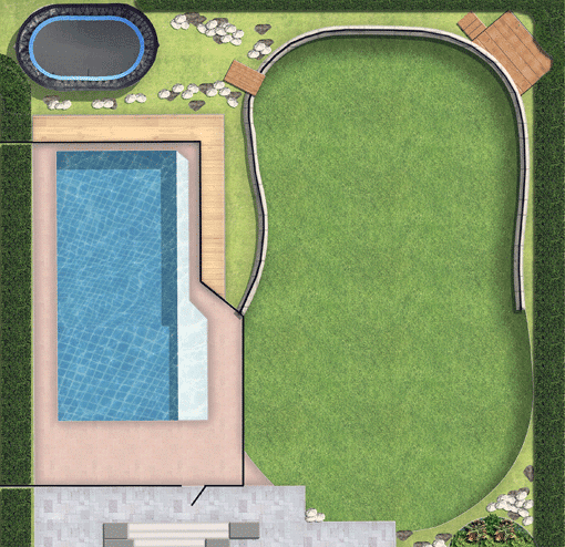 - Courtyards; Pergolas; Tiling; Driveways